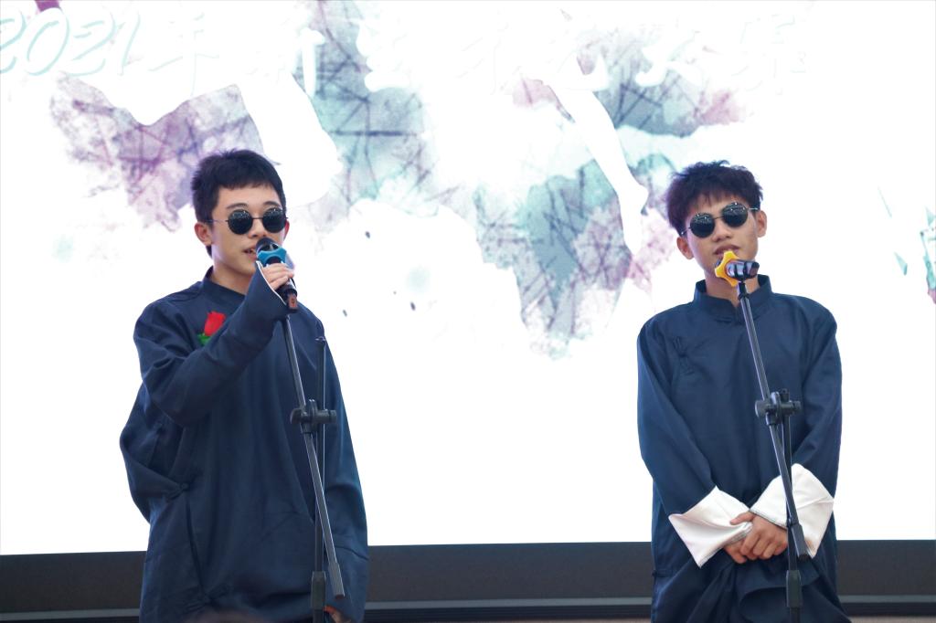 本次大赛大赛以“材展青春心向党,艺起扬帆新征程”为主题,充分结合今年建党百年迈入新征程的时代背景,体现了同学们青春向党的精神内涵。在主持人致开场白后,由消防车乐队的两首歌曲《披星戴月地想你》和《鹿befree》拉开了大赛的序幕,朗诵《桂工的梗》和相声《保险》令场上观众开怀大笑,舞蹈《solo》激动人心。过程中,20级助演嘉宾的歌曲及舞蹈点燃了大家的热情,将大赛氛围推向高潮。合唱《国家》婉转悠扬打动人心,比赛最后由尹贤彬老师献唱一首《水手》给大赛划上圆满的句号。经过评委老师的投票和评分,《姗姗》以高分荣获一等奖,《成都》及《父亲的散文诗》荣获二等奖,《迟迟》、《我害怕》、《老男孩》荣获三等奖,《solo》、《国家》、《桂工的梗》、《传闻》荣获优胜奖。经过线上投票,《桂工的梗》获得最佳人气奖。最后由各评委老师分别为获奖班级及选手颁奖并合影。