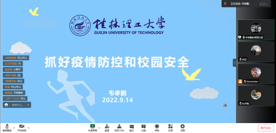 为继续推进2022级新生系列入学教育,树立新生的安全意识。9月14日,研究生辅导员韦孝鹏老师以《抓好疫情防控和校园安全》为题,以校园真实案例为切入点,针对宿舍安全、交通安全、人身财产安全等安全教育领域,重点强调校园疫情防控、防溺水、防诈骗等常见问题。新生们认真倾听,纷纷表示要提高安全意识,严格遵守校纪校规,遇到问题时积极与老师沟通。