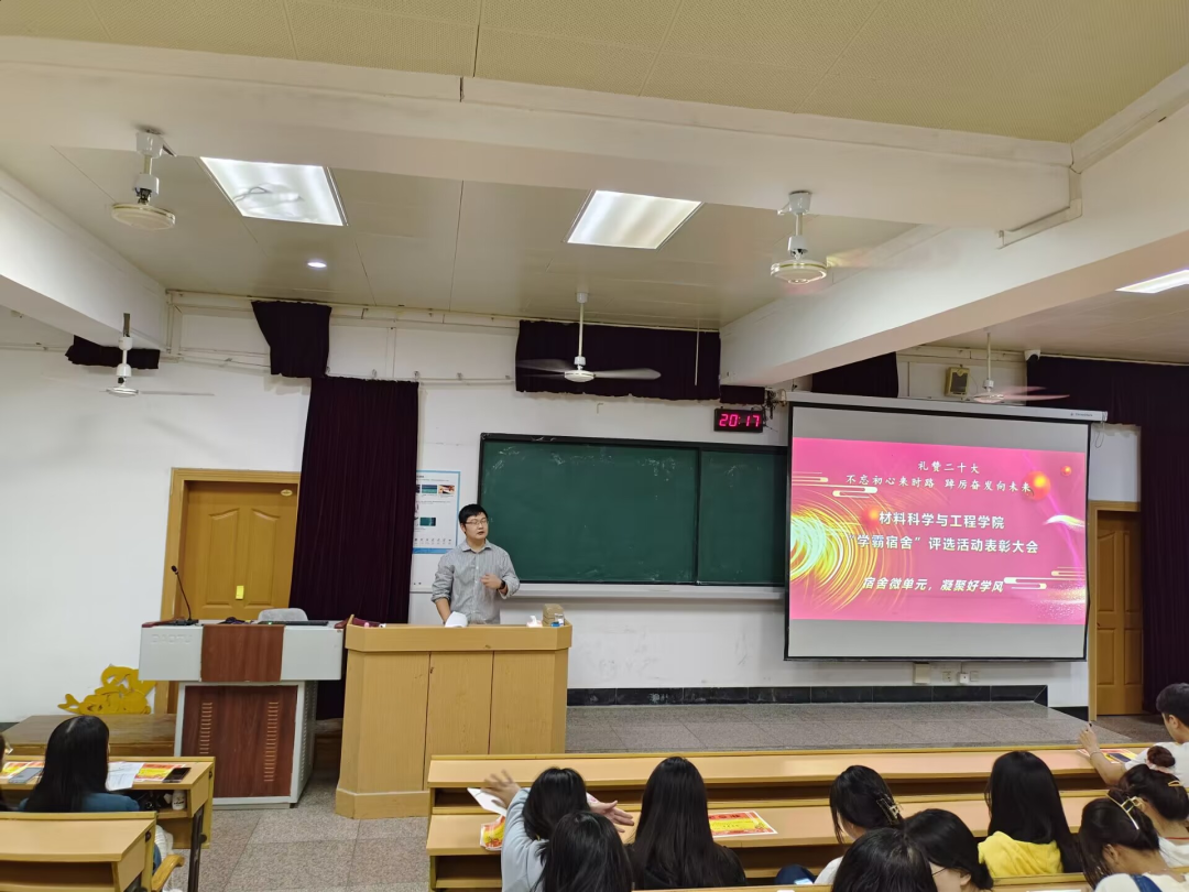 为推进我院优良学风建设,发挥榜样力量,以自律“舍风”带动优良“学风”,营造积极进取、勤奋好学的学习氛围,充分发挥宿舍育人功能。402永利集团官网特举办“宿舍微单元,凝聚好学风”为主题的“学霸宿舍”评选活动。本次活动共收到申请表46份,共评选出“学霸宿舍”22个,其中2019级4个,2020级8个,2021级10个。为表彰优秀、塑造榜样,学院在11月8日在屏风校区9101教室成功举办402永利集团官网2021-2022年度“学霸宿舍”表彰大会。本次大会共分4个环节,由2021级杨晴瑞同学主持。