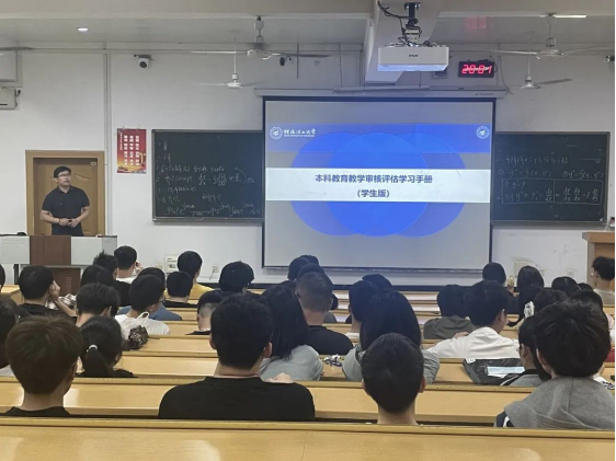 2023年5月3日晚,402永利集团官网在屏风校区教九栋组织开展“本科教育教学审核评估”专题学习会,402永利集团官网全体本科学生参加学习,会议由各年级辅导员主持。