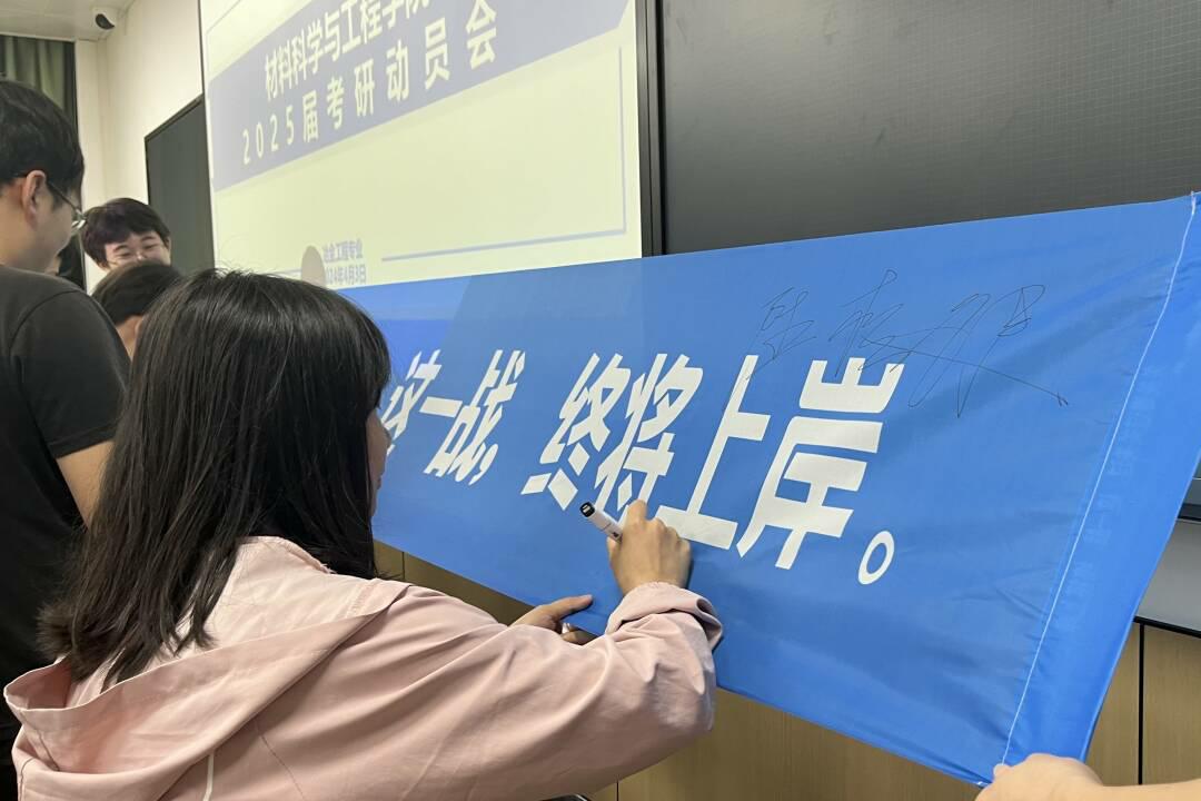 与此同时,学院辅导员也将学生考研工作列入重点长期工作当中。自学生入学以来,学院辅导员利用大学生成长成才课、主题班会等契机,多次向学生普及考研优势,做好考研动员。在本次“榜样领航·材料青年说”活动期间,辅导员联合班干部开展了“榜上有名”签名活动,以签名的形式,在学生心中种下考研的种子,待考研上岸时,成为漫漫考研路上的见证。并且,学院辅导员积极协调各方资源,给予考研学子全方位的支持与保障,通过开设心理辅导、专题培训、复试指导以及日常慰问关怀等方式,努力为考研学子保驾护航。